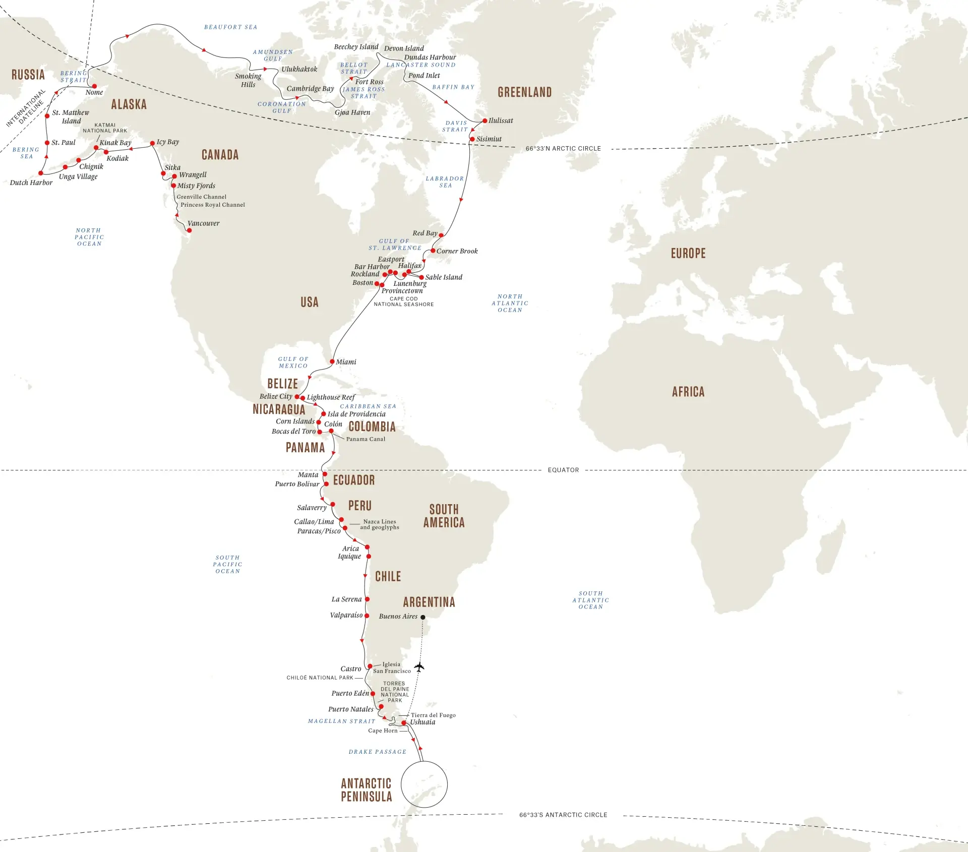 You could start the trip of a lifetime from right here in Vancouver on August 2nd, 2023! If you’ve got 94 days and approximately $75,000 CAD per person to spare, you can sail from Vancouver all the way to Antarctica via the Northwest Passage with stops along the way in the Canadian north, the United States along with Central and South America.