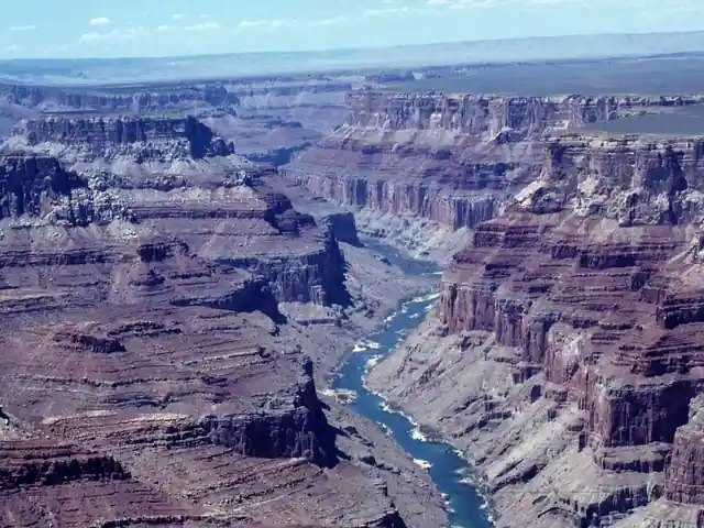 The Grand Canyon was carved out by the Colorado River. The steep sided canyon is one of the greatest natural endowments in the United States. Only the great Praires and the Niagara Falls come close to compete with it.